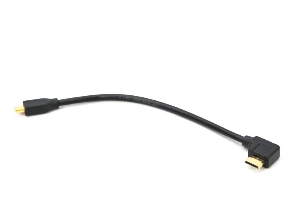 HDMI cable with Type D (Micro) to Type C (Mini) connections for connecting from a camera to an HDMI bulkhead in 190mm length (approximately 7.4″)